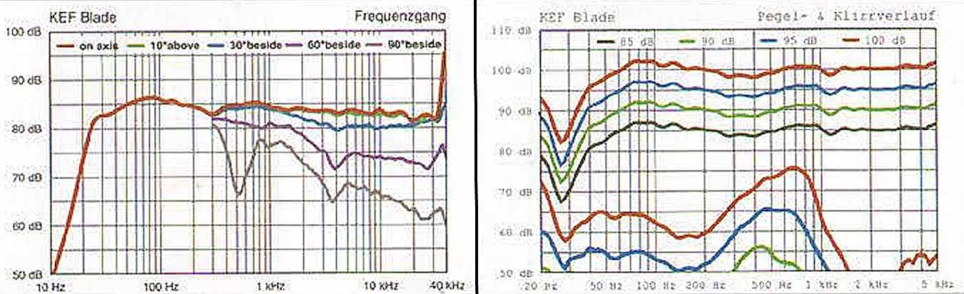 Im Bass und Grundton liefert die Blade hohe Reserven und zeigt erst bei 107 Dezibel leichte Kompres- sions- und Klirrtendenzen. Im Mittelton ist der Klirr leicht erhöht, steigt aber nicht sprunghaft mit dem Pegel. Das bremst allerhöchste Pegel etwas, spielt aber in der Hörpraxis keine Rolle.